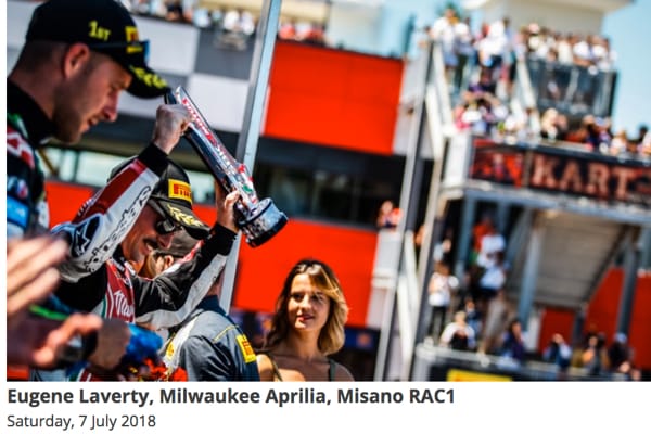 8 July 2018, Misano Circuit (Italy) – Milwaukee Aprilia delivered an excellent performance at the Misano World Circuit this weekend, 9th Round of the World Superbike Championship, securing a strong third and eighth on Saturday followed by seventh and eighth on Sunday. Following a strong run in Superpole Eugene Laverty delivered his best qualifying of 2018 and lined up P3 on the grid with a lap of 1'34.281. Lorenzo Savadori's pace was not far from his teammate and qualified close behind in P5 with a 1'34.400.