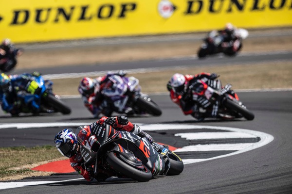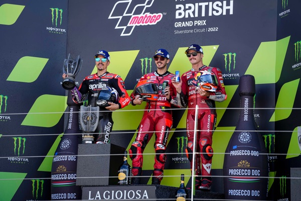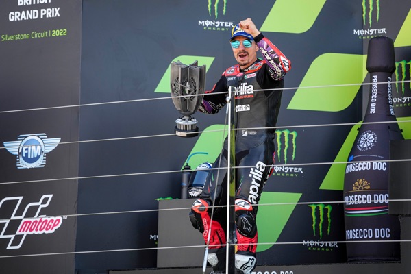 Silverstone (UK), 7 August 2022 - The comeback ride, the final recovery, the overtaking, and the second consecutive podium: there is much to celebrate in the Aprilia camp which, with Maverick Viñales in Silverstone took their umpteenth great result of this incredible season. After starting from the front row, Maverick lost a few positions at the start and in the frenetic opening laps. Staying focused, he began his comeback with times that improved lap by lap.