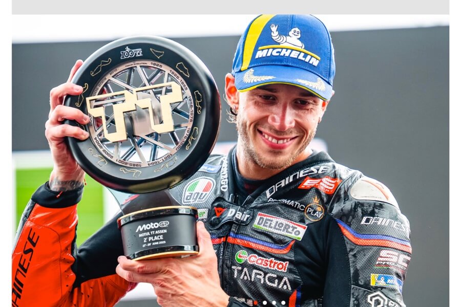 Assen, 29 June 2025 - Aprilia Racing’s weekend on the Assen TT Circuit ended with their second consecutive podium finish after yesterday’s Sprint race. Marco Bezzecchi rode a solid race, confirming his growing feeling with the RS-GP25. After starting from the fifth spot on the grid, he moved quickly into second place on the eighth lap, maintaining it all the way to the chequered flag. With a competitive race pace, the Italian rider stayed glued to the leader for the entire distance, finishing at a distance of just six tenths of a second.