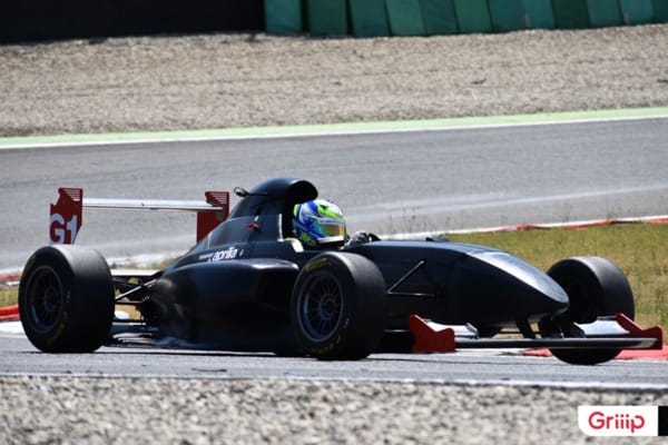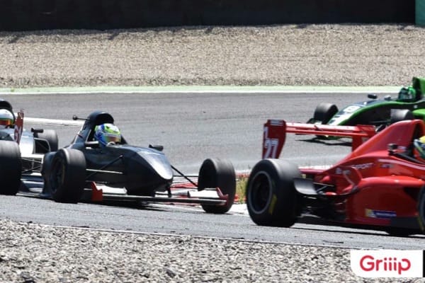ITALIAN FORMULA X ISERIES, RACE 1 LAST LAP. YARIN STERN OVERTAKING FOR THE WIN IN THE G1 POWERED BY APRILIA OFFICIAL RSV4 1000CC ENGINE.The application for the first time ever of a powerplant that is the only one of its kind in the world for configuration, with a 65° angle between the banks, a solution devised by the Aprilia Research and Development department as ideal for obtaining a benchmark chassis architecture to deliver exceptional performance, stems from the choice of the Israeli company Griiip to use it in their G1 single-seater and it confirms Aprilia Racing in the role of the Piaggio Group’s most technologically advanced platform, capable of transferring skills and innovation into the automotive field as well.