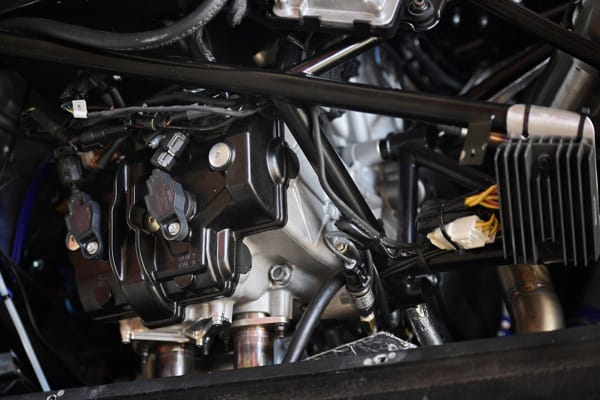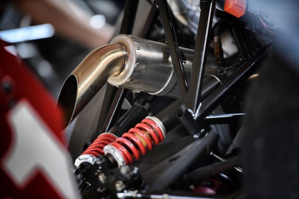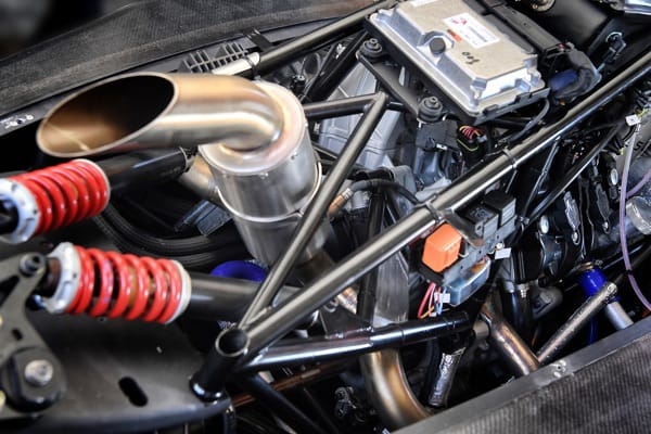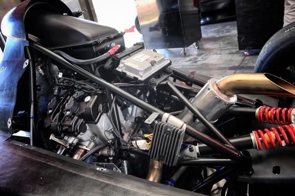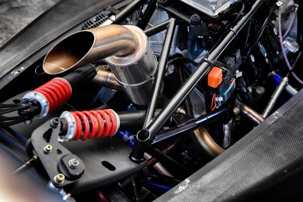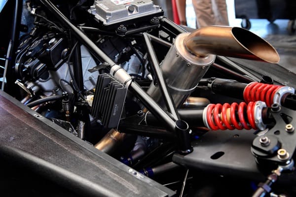 Engine lubrication and cooling are guaranteed even in the most critical conditions of high lateral acceleration on corners thanks to a dedicated system that implements an oil lubrication and recovery unit. The dynamic air intake with oversized airbox and the 4 in 2 in 1 exhaust system complete the application of the RSV4 engine in a racing car.