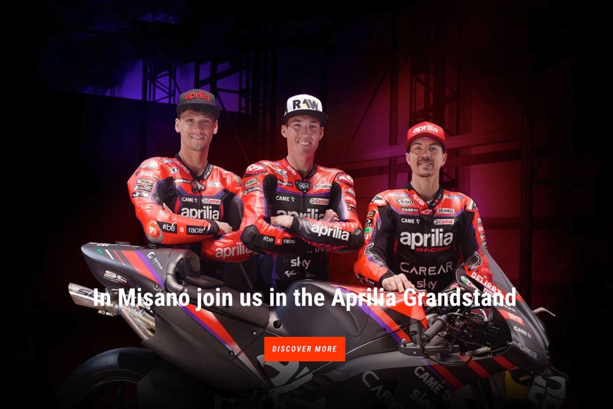In fact, the Aprilia grandstand is back, created to provide a unique and memorable experience for MotoGP enthusiasts and fans of the Italian brand. An entire sector of the covered “Tribuna B” will be reserved for Aprilia fans with numbered seats and a range of accessory comforts such as dedicated parking, both for those who arrive at the Misano World Circuit in cars and for those who decide to ride to the Adriatic Riviera on their own two-wheelers. All together, with friends or family, to cheer on Aprilia and to enjoy the spectacular MotoGP show.