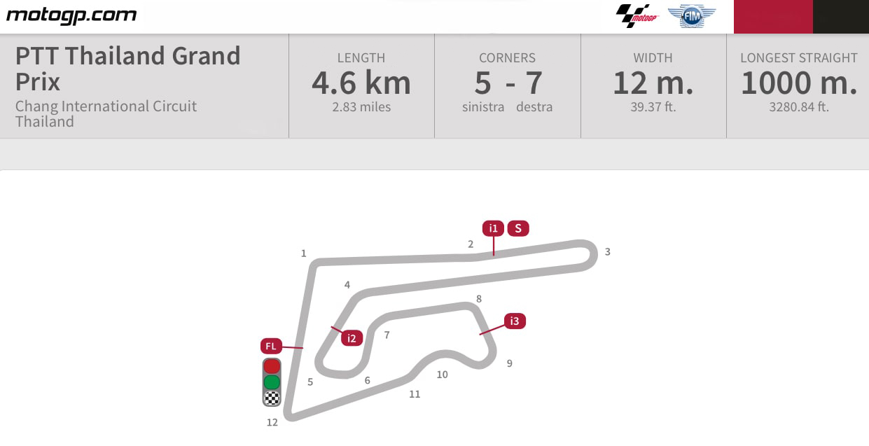 However, the first overseas round at the Chang International Circuit in Buriram (Thailand) poses a new challenge for the Italian bikes on asphalt that has proven to be demanding for riders and mechanics. The high temperatures combined with a unique layout require a particular fine tuning which is a compromise between the stability required by the fast-initial part and the agility that is so essential on the turns.