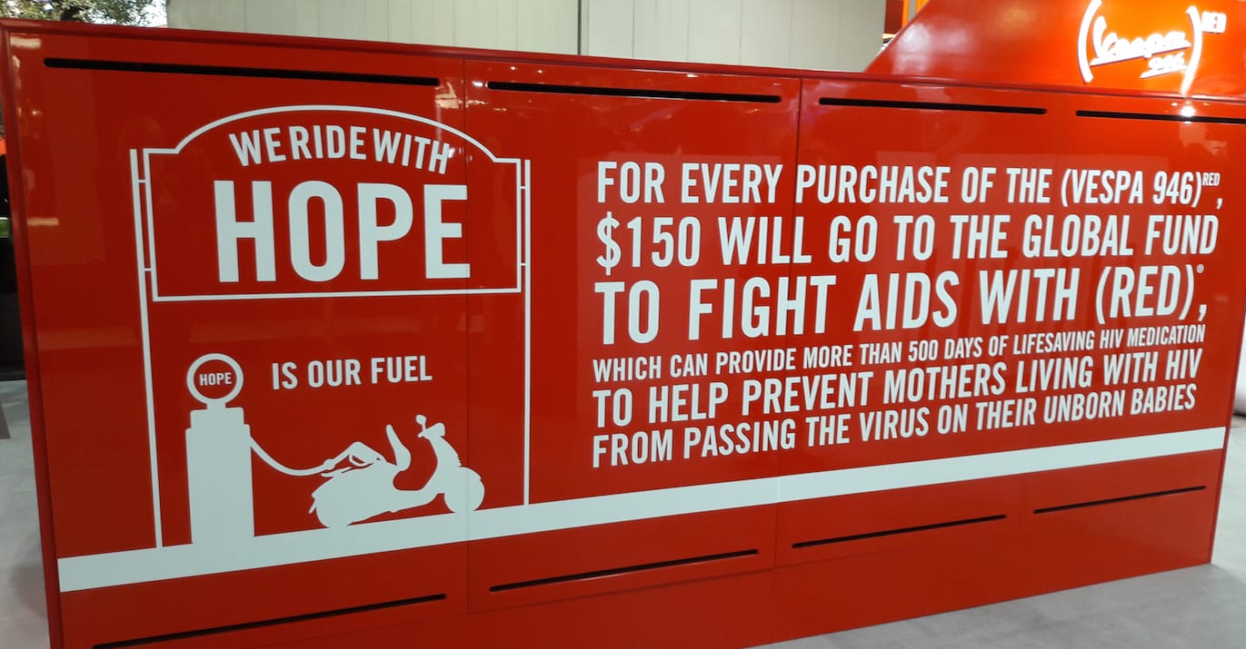 Since the scooter’s launch in 2016, every Vespa (RED) sale goes to support (RED), as will – beginning this year – sales of the new Vespa (RED) VXL recently launched in India.