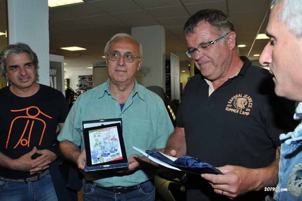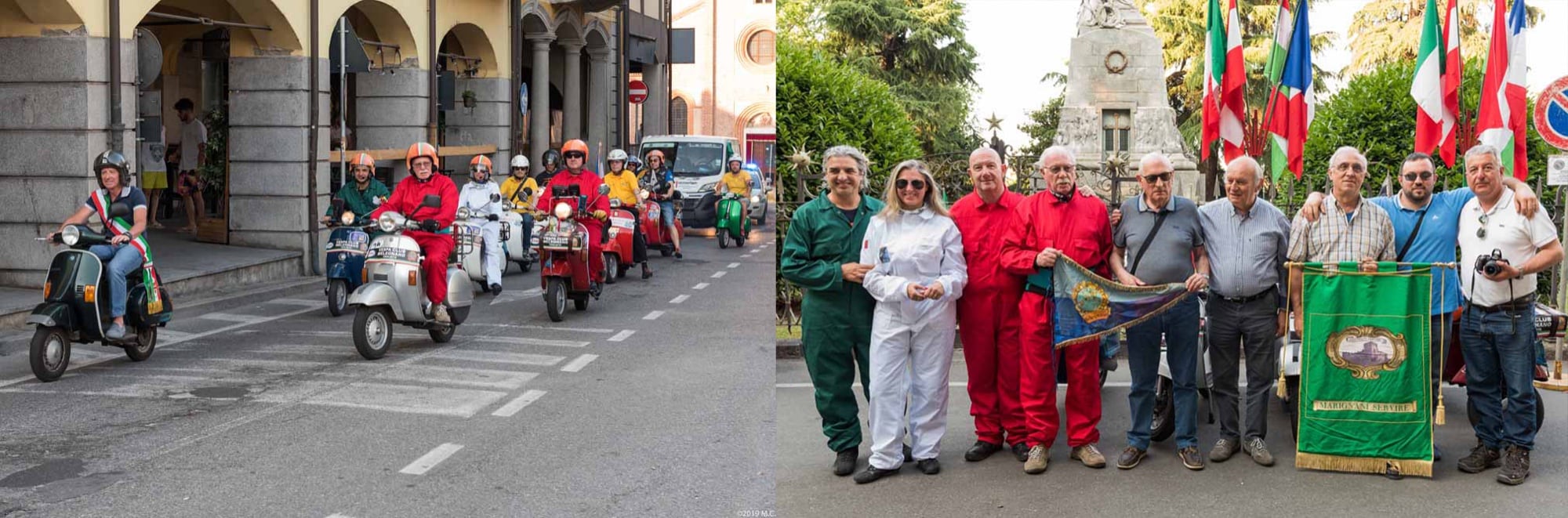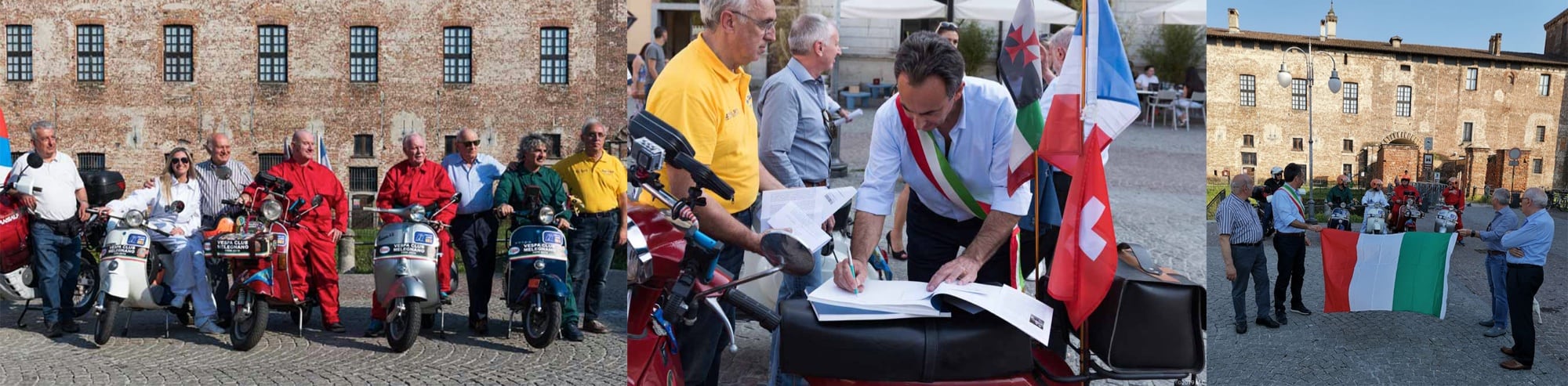 And then the final parade, led by deputy mayor and Vespa rider Ambrogio Corti, with the Vespa Clubs of Vizzolo and Lodi riding alongside, the standard of Marignani Servire which provided such invaluable assistance, the services of Massimiliano Gola and, one by one, we ride across the finishing line: Giuseppe Cremonesi, Vincenzo Ballerini, with Salvatore Maniscalco who took the photos, the writer with his son Riccardo who acted as front-riders, protecting and taking care of the proud Vespa riders Angelo and Elena Lavesi, Massimo Arese and Mauro Tresoldi, the real protagonists to whom we pay homage. Honour is also due to the two Vespa riders from 1959, the unforgettable Giuseppe Raineri and Pierino Cremascoli, who travelled with us and shared our joy with a small laurel wreath, a short ceremony and deep emotion”.