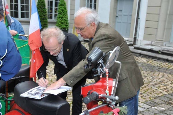 5-9 June 2019 – “Berne-Chambéry-Melegnano, just under 1,200 kilometres, a road map organised in three stretches; the mission to re-enact the 60th anniversary of the Vespa relay undertaken in 1959. The trip was packed with meetings and events, and initially beset by bad weather, although this failed to dampen the spirits of the participants, who were well aware of the expectations of the many people who came to cheer them on when they left.