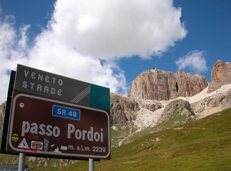Then another ascent towards the Pordoi Pass (the name means “meadowland”), the unmissable Alpine pass dividing the provinces of Trento and Belluno, a legendary section of the Giro d’Italia, the round-Italy bicycle race.