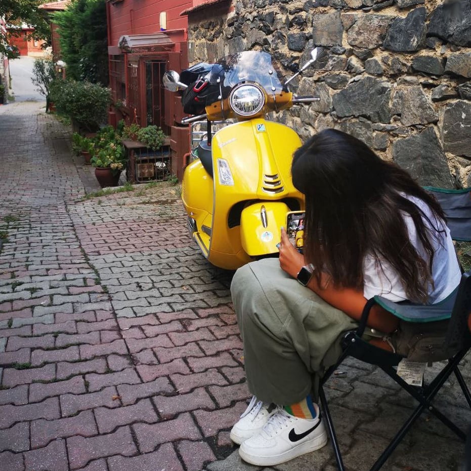 Gülşah Merve writes, “This is the story of a woman who was bored with metropolitan life, seized the opportunity, and left without a plan, and didn’t return for 3 months. And after this article, you might find yourself making plans to hit the road. I would be happy if you were to find it inspiring and exciting, an anthem to the freedom to travel, discover new places, and meet new people. I decided to leave in April. Because I was so tired of everything (…). The only bike I had at the time was the famous Vespa Gts Super 125, astonishing with its style and then, being yellow, it’s hard not to attract attention. Vespa has a soul, it has a story.