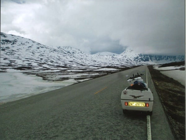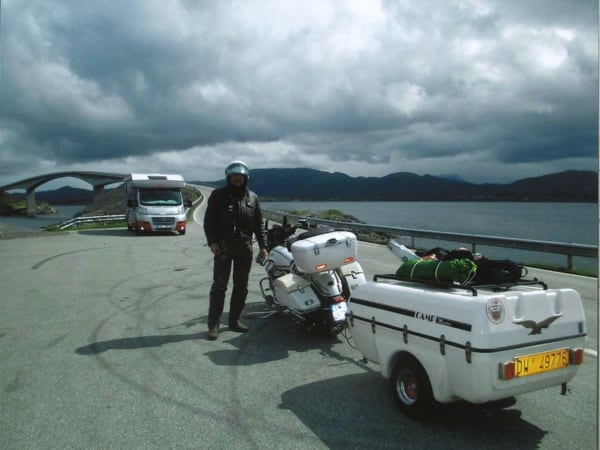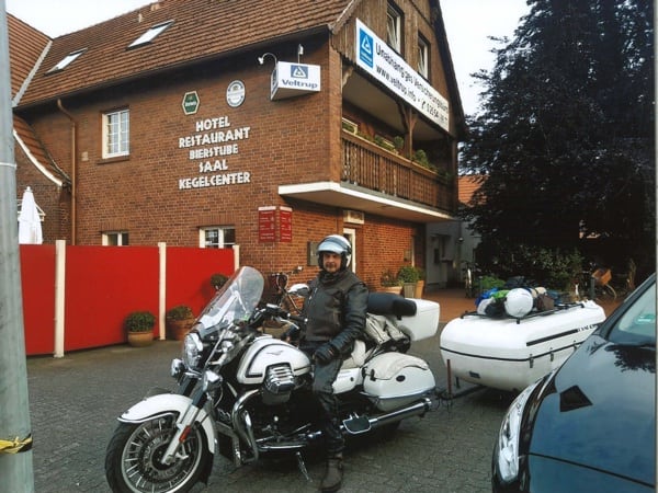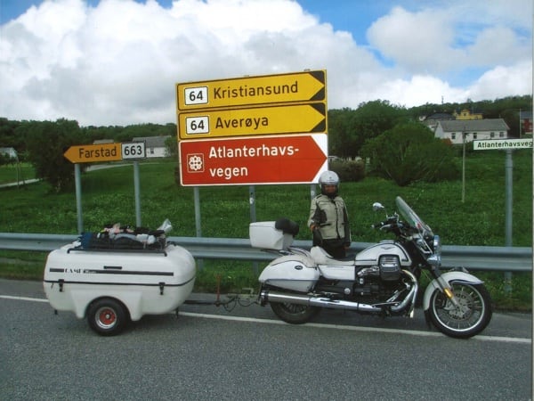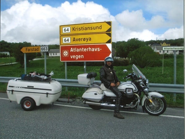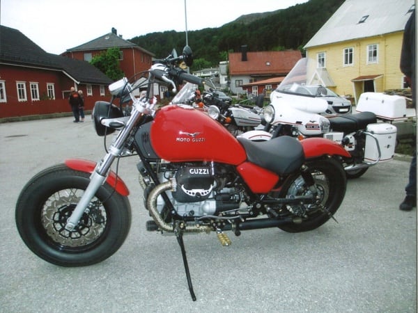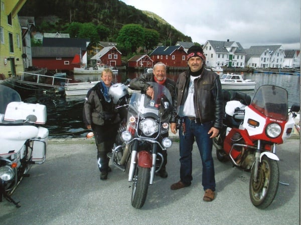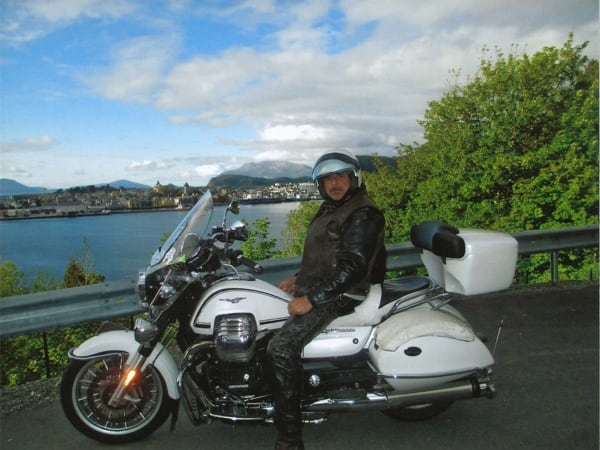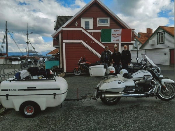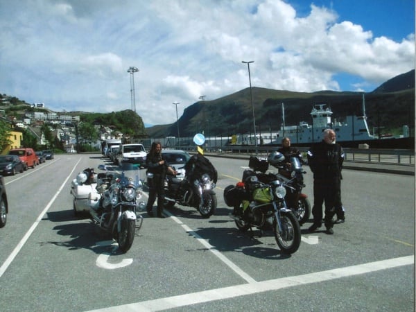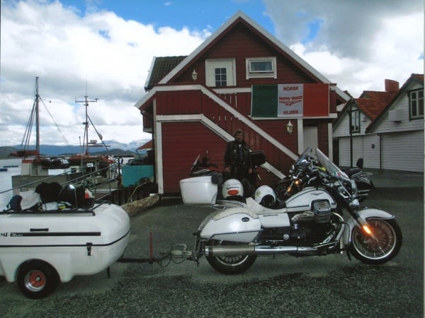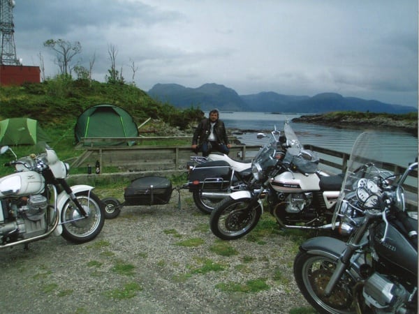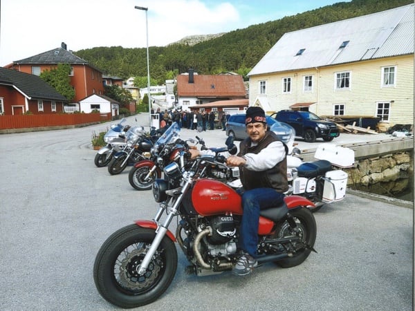 Manuele continues: “After Hamburg, still headed north, I crossed through Denmark and over that fantastic 17 km long bridge. Then on to Sweden, to Malmö and the Guzzista rally in Hobo; then I continued on to the centre of the country, to Jönköping. Then Norway, Oslo, from Otta to Måløy and then to Kalvåg, to meet up with other Guzzisti friends, such as Mr. Bini and Karin, Austrians from Vienna, or like Enrico Cravino from Brusasco (Turin province), of the Moto Guzzi World Club and his club Il Nido delle Aquile (The Eagles’ Nest), who I met on the return trip. The Kalvåg rally was a thrill, hosted by the Norsk Moto Guzzi Club: they even gave me a ‘meritorious’ badge for the 3,800 km long Piombino/Italy- Kalvåg/Sweden trip there” (editor’s note - in the photos below).