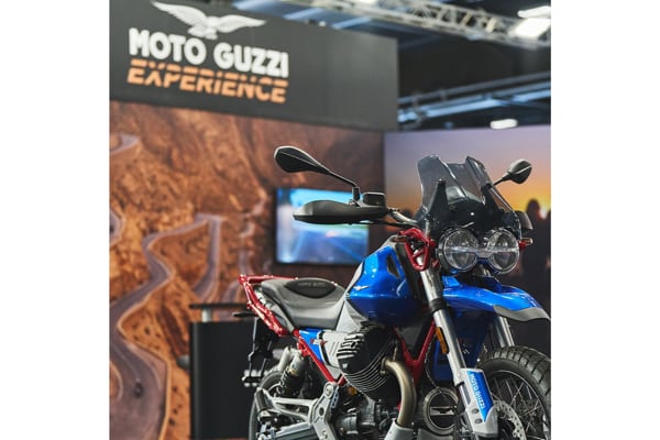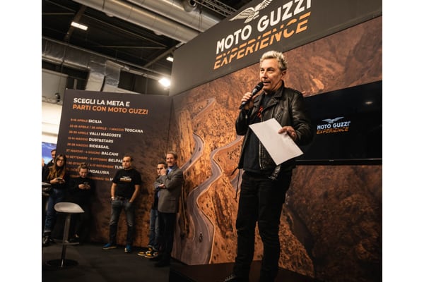 Moto Guzzi Experience 2023 launch at the “bikers’ show” MBE-Motor Bike Expo of Verona, Italy (15th edition, 27-29 January 2023). With Dj Ringo and customizer brothers Gianfranco and Vittoriano Guareschi.