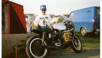 MotoGeo founder, director, rider Jamie Robinson was born into the 2-wheeled world in July 1975 and brought up by a motorcycle obsessed father, who chopped up an old Garelli moped to teach his son to ride at 3½. After growing up watching his Dad Phil compete at race tracks like Cadwell Park and Mallory on his BSA Gold Star, Jamie swapped his dirt bike gear for leathers and joined his father racing the asphalt tracks in 1992.