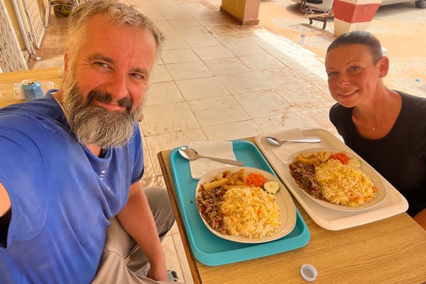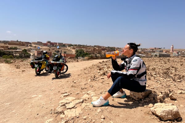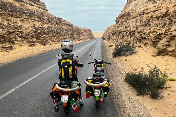 In Mauritania the V-belt of Alice's CIAO collapsed and in addition the strong winds from the Atlantic Ocean tortured the two globetrotters while riding at a maximum speeds of 15 miles per hour. On day 14, the longest stage took them to Dakhla with temperatures well over 100°F, finally there was some time for a detailed service.