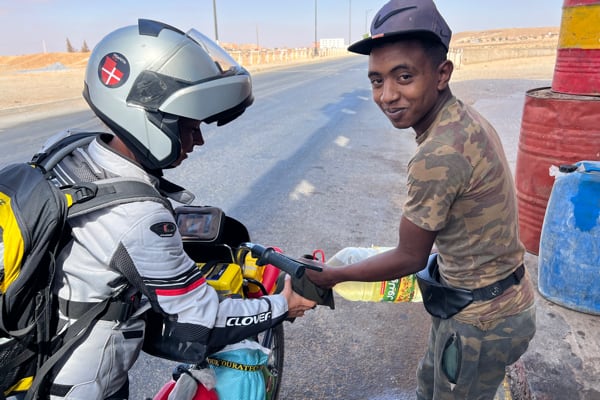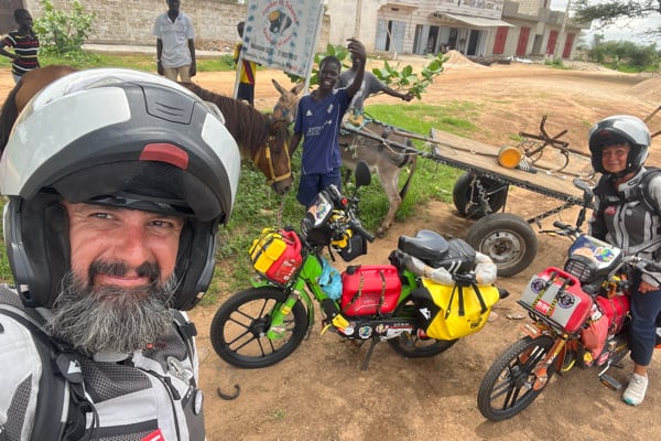 In Mauritania the most difficult moments: the two continue on their mopeds, between bad roads and puddles…Behind Nouakchott both mopeds stop working due to watered down petrol. Hours of pushing, uphill in sweltering heat, demanded the last of their strength, topped only by the three-hour wait in customs to enter Senegal. Mirco explains, “The mopeds are not really suitable for the roads and weather conditions we faced, so man and machine need to be prepared exceptionally well. This includes good fitness as well as a certain ability to suffer. Heat, wind and sand, the punctures, the road conditions and the border crossings constantly challenged us. Every day in the saddle we saw the sun rise, and in some cases even the sunset, but even with big problems, fatigue, exhaustion, sweat and sand, we never lost our smile, because we had dreamed of this experience and planned it for a long time. Nothing could dampen our joy at finally embarking on such a unique journey and making the most of every moment.” This is the spirit of true adventure travellers!