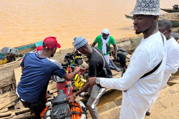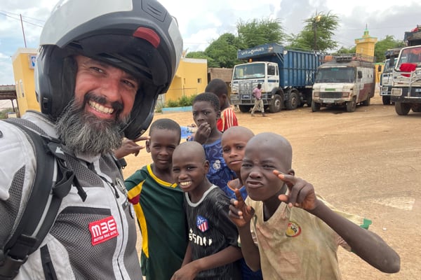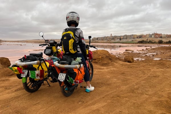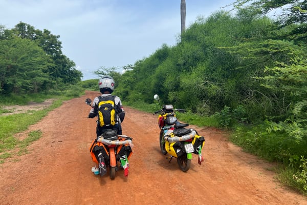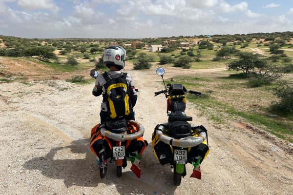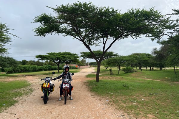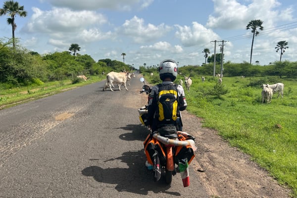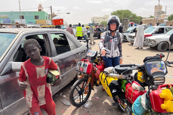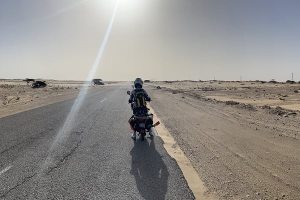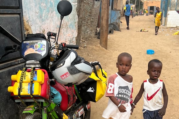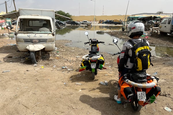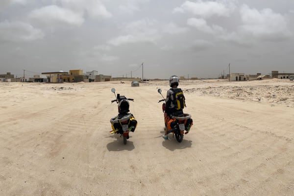 The destination: Dakar!On the way to Saint Louis in Senegal, they got caught in a monsoon-like rainstorm while riding at walking speed with honking cars constantly overtaking. One of these cars disappeared a second later into a manhole without a lid!