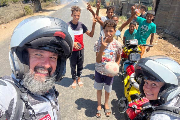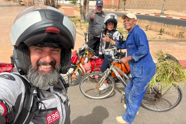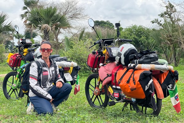 I planned the encounter at the Verona Motor Bike Expo in January 2023 to meet this fun Italian couple. Mirco, 48, and his wife Alice, 39, who rode two Piaggio CIAO mopeds from Paris to Dakar in August 2022. These two are just bursting with energy and positive charisma. I'm puzzled and can’t withhold my curiosity: "What prompted you to undergo such an undertaking?" Mirco explains with great composure, “We have been driven for a long time by a strong need to live our passions together and do what we love most: travelling on motorcycles, discovering new things, meeting people and, getting involved. We were aware that the trip to Dakar on mopeds would be a very difficult journey, but we were open to accept anything that fate had in store for us. Facing the good and the difficult sides of live with a positive attitude is what pushes us.” OK, I say, but for such a trip you need a motorbike, non a 50cc... “We have made many trips on real motorcycles in recent years, where everything was well organized and planned ahead,” continues Mirco. “The CIAOs allow us to ride at a slow pace, giving us the chance to rediscover the joy of riding carefree and without pressure to reach the next destination. On the mopeds we enjoy everything that surrounds us in a completely different way. Every change of colours, smells and climate is much more direct, and we really inhale every single moment that the road offers. We ride only on back roads and through small villages, where we experience direct contact with people and arouse their curiosity.”