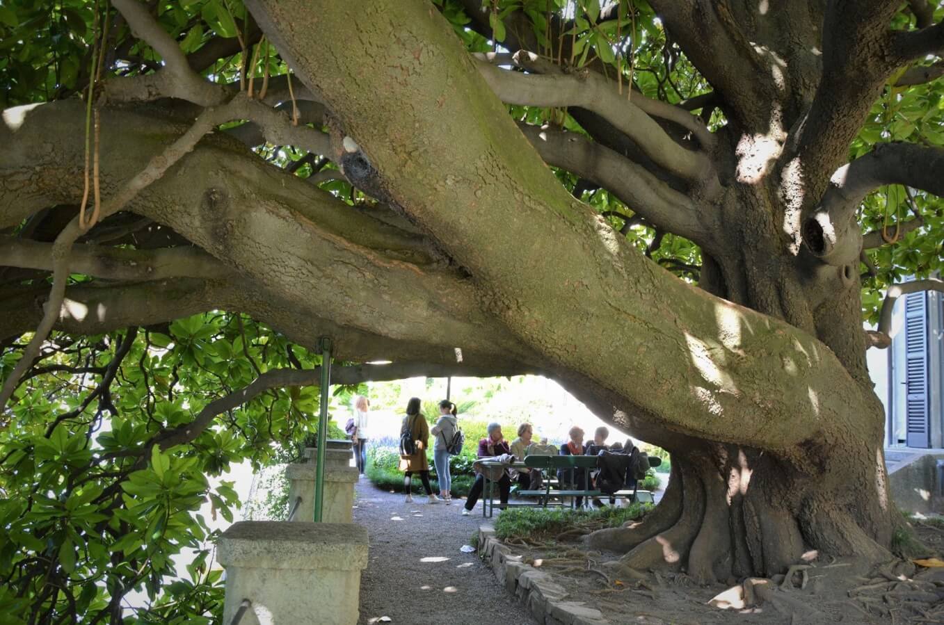 Here, once you have paid the entrance fee (€9 for the garden alone, if memory serves), you’ll step inside a little corner of paradise, where it is impossible not to notice the Magnolia glandiflora with its luxuriant foliage. The base of its greenish trunk swells to a girth of four and a half metres, then opens out into a series of primary branches, one of which bends and extends toward the shores of the lake like a trunk, seeking water and sun, and enjoying the stunning surroundings, just as we would on a bench.