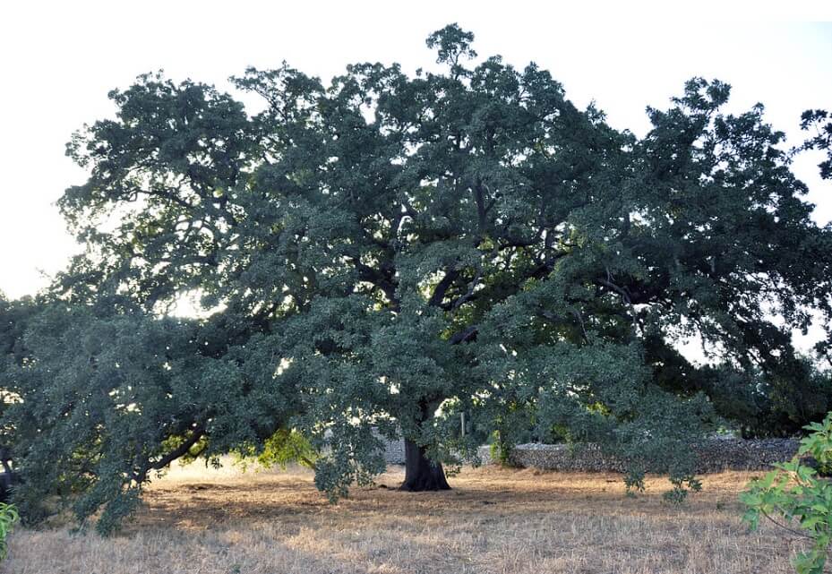 South: left in Sardinia, ‘S'Ortu Mannu’ (Villamassargia, province of Sulcis Inglesiente), a natural oasis-museum with 700 olive trees dating back centuries, including ‘sa Reina’ (‘his Queen’); right, in Puglia Tricase (Lecce) and photo below: the Vallonea oak, a 900-year-old tree which is one of the oldest in Italy, 20 metres high, with a circumference of 4.5 metres and a canopy that spans 700 square metres. The protagonist of the ‘legend of the hundred knights’: it is said that Frederick II of Swabia, returning from the Crusades, took shelter from a heavy storm under the immense tree, a stone's throw from the sea, together with his hundred knights.